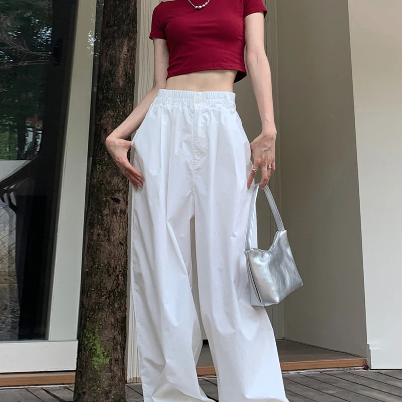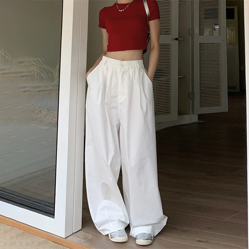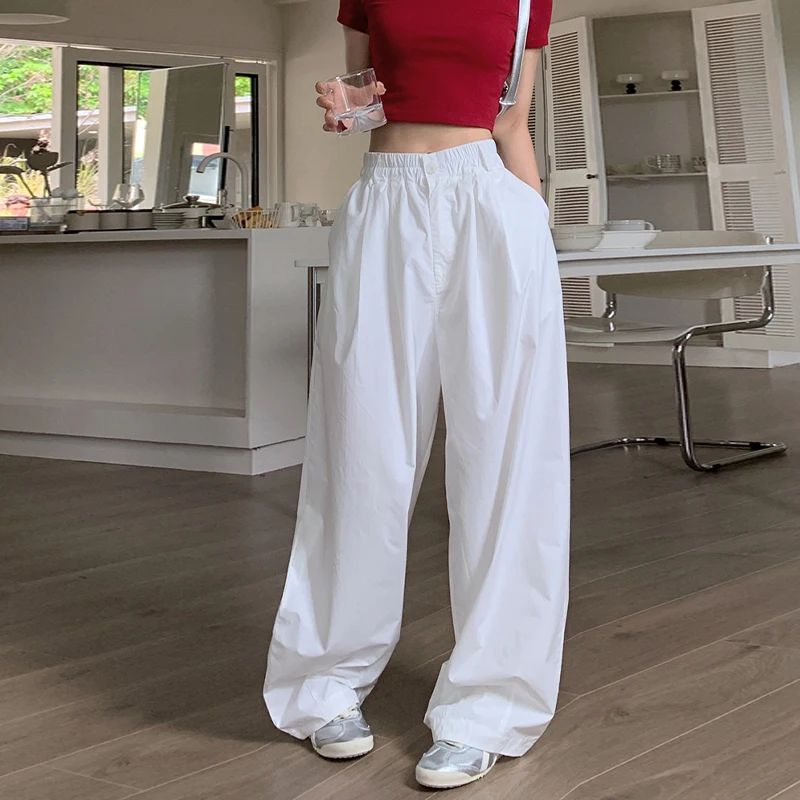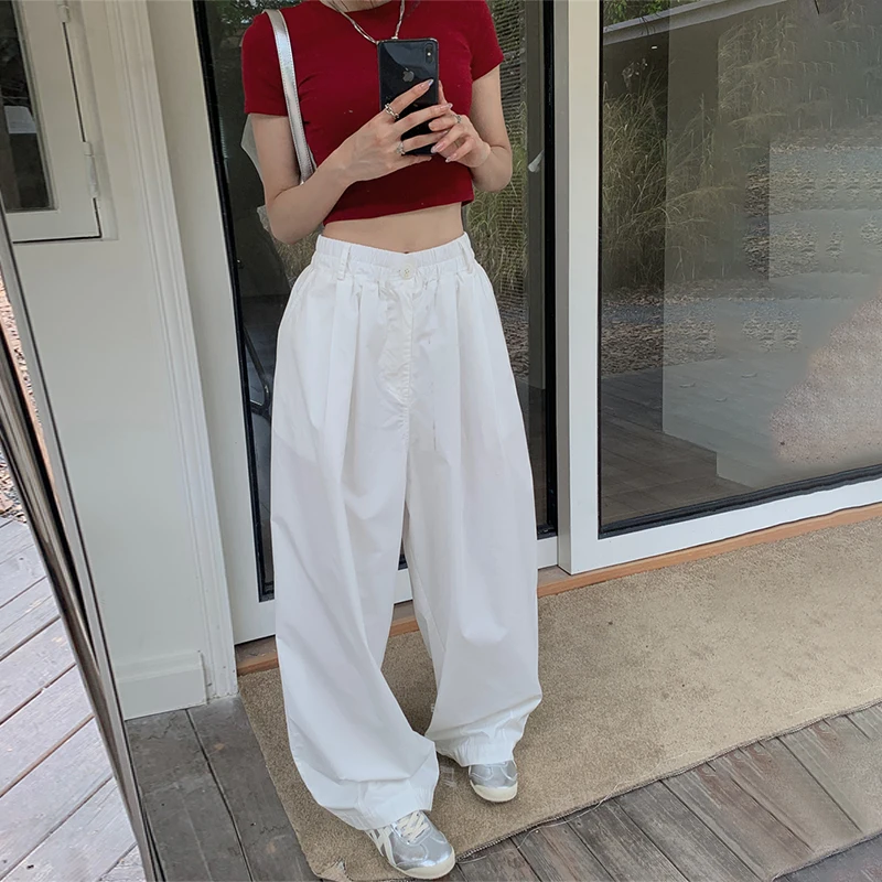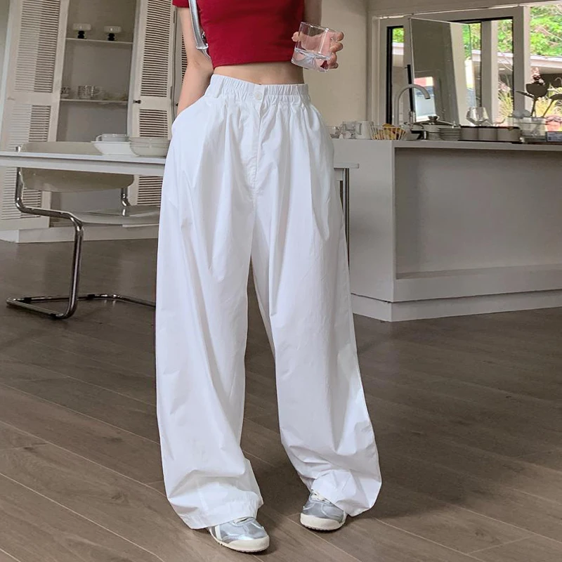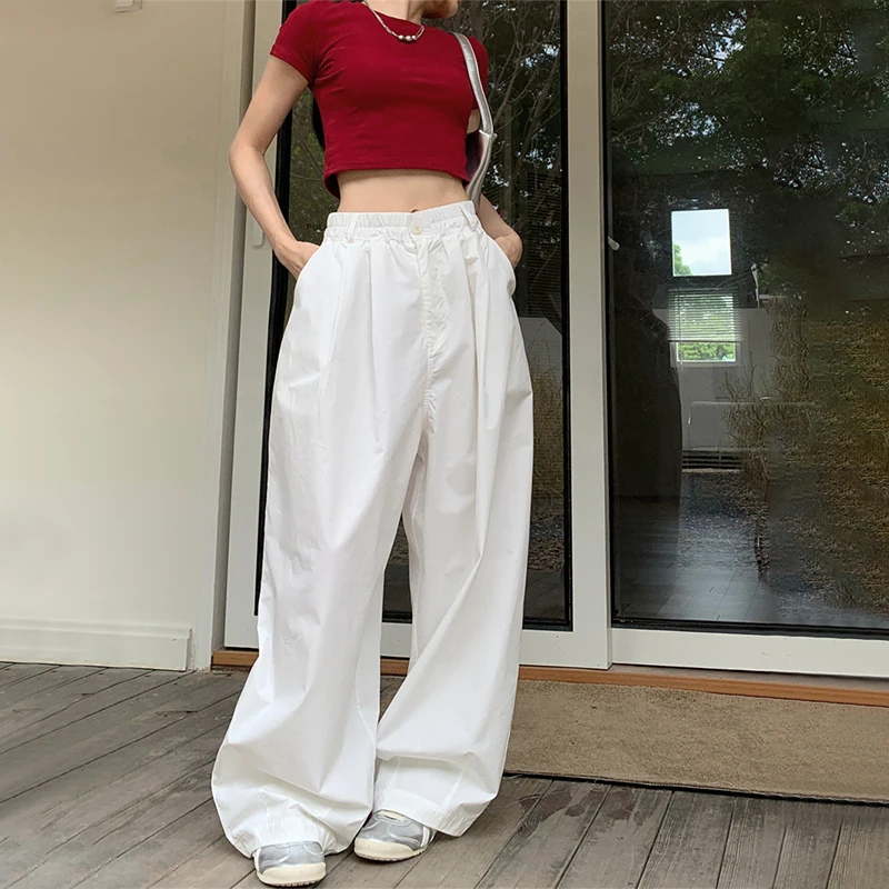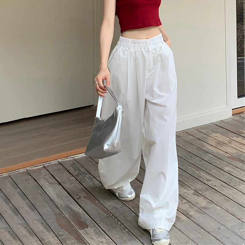 The post Baggy White Parachute Cargo Pants Y2K High Waist Shirring All-Match Trousers Bf Korean Oversized Hip Hop Streetwear Joggers appeared first on Buying Haven.