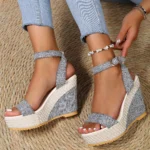 Home » Shop » 2024 Large Size Thick-soled Wedge Sandals for Women Summer New Style One-line Cloth Thick-soled Buckle Sandals