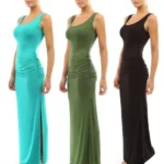 Home » Shop » Hot Sales Solid Color Women Scoop Neck Sleeveless Summer Maxi Side Split Ruched Long Dress