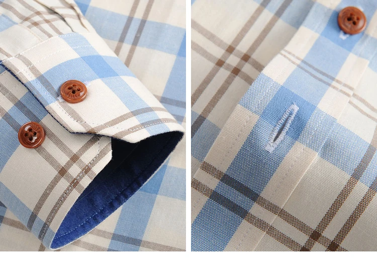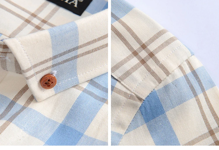 Home » Shop » Men’s 100% Cotton Long Sleeve Contrast Plaid Checkered Shirt Without Pocket Casual Standard-fit Button Down Gingham Dress Shirts