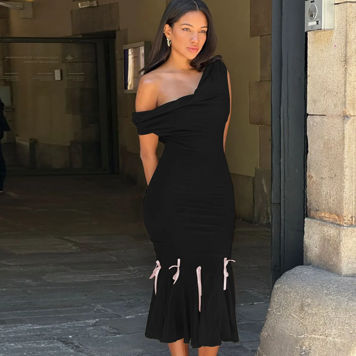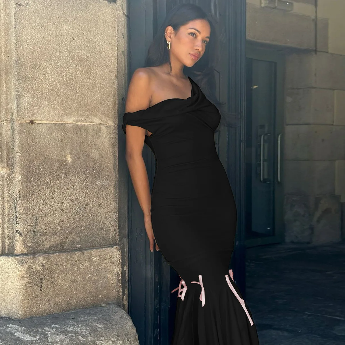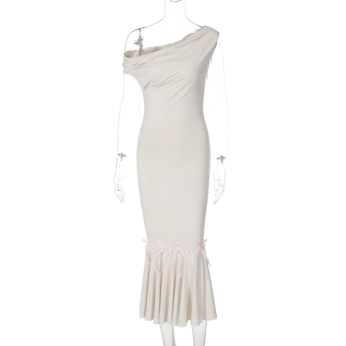 Home » Shop » Mozision Oblique Shoulder Backless Sexy Midi Dress For Women Solid Color Sleeveless Bodycon Lace Up Long Fishtail Dress Elegant