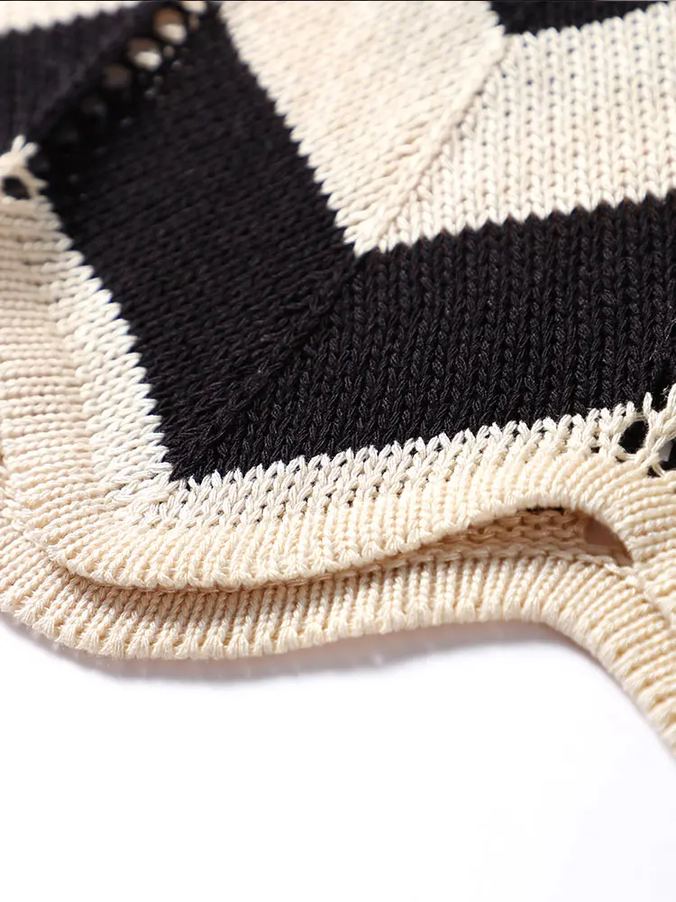 Striped Knitted Women Dresses Long Sleeve Lace Up Maxi Beach Dress For Woman Slim Knitting Hollow Out Square Neck Robes