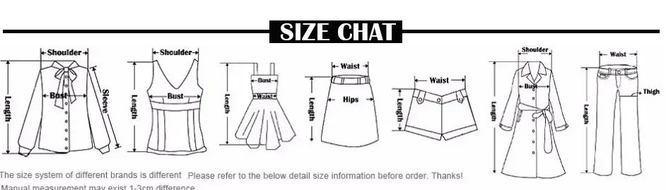 This clothing size information is just for reference only, and may have 2-3cm differences due to manual measurement.