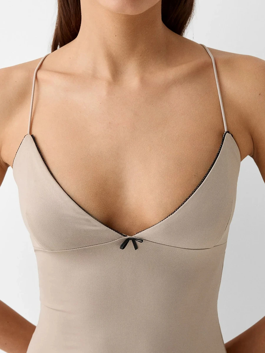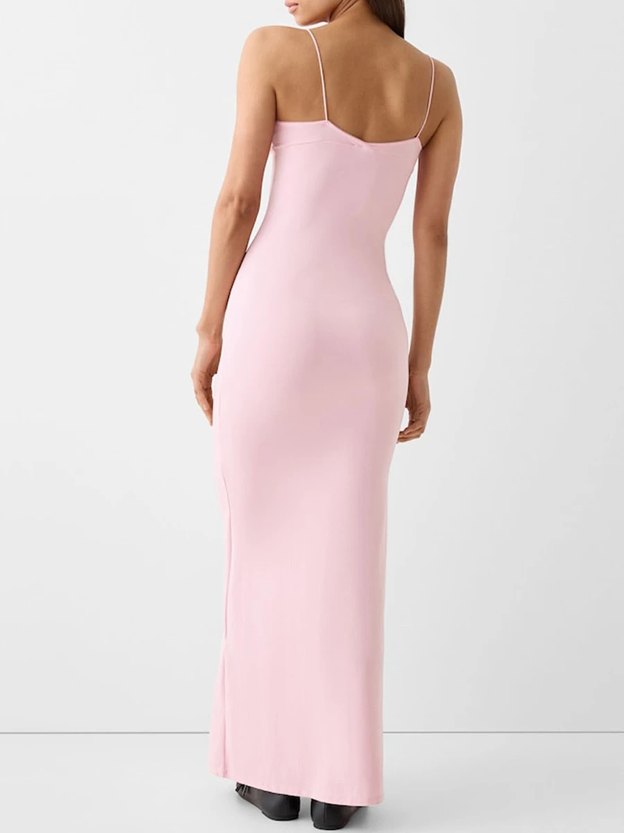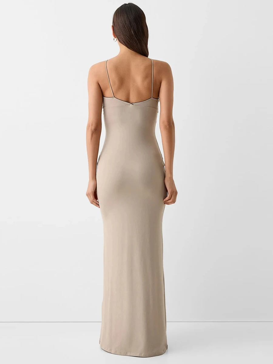 Women Summer Long Evening Dress Sleeveless Backless V Neck Fitted Spaghetti Strap Dress