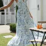 Home » Shop » Women’s Summer Chiffon Halter V Neck Sleeveless Floral Flowy A Line Maxi Dress Boho Backless Tiered Swing Long Beach Dresses